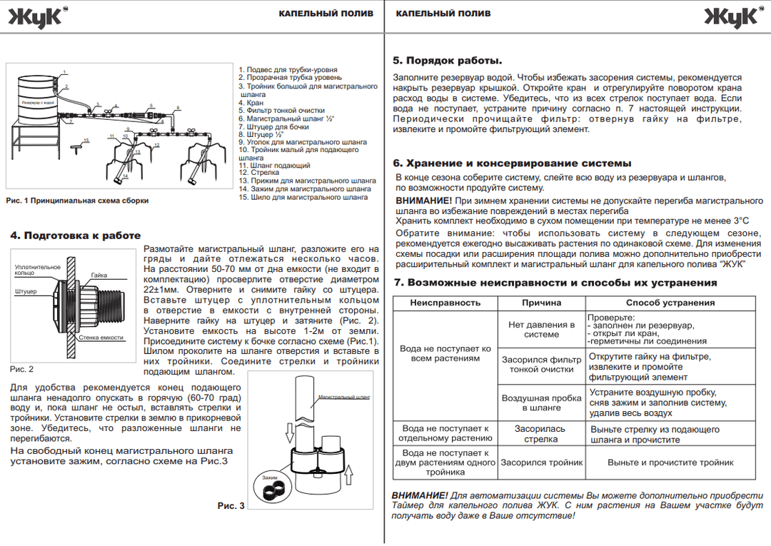 • Оборудование собирается очень легко. В комплекте есть все, что нужно для полноценной работы капельного полива